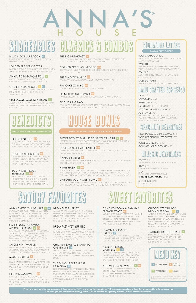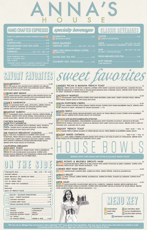 At Anna's House - Ann Arbor Menu, you'll find a welcoming space offering a variety of mouthwatering options perfect for any meal of the day. Whether you're craving a hearty breakfast, a light lunch, or something in between, the menu is packed with comfort food favorites made with fresh ingredients. From classic pancakes to creative twists on traditional dishes, there's something to satisfy everyone. The laid-back atmosphere complements the inviting flavors, making it an ideal spot for a relaxed meal with family or friends. And with dishes ranging from savory to sweet, every bite promises a delicious experience that will keep you coming back for more. Come in and explore the options that make Anna's House a go-to destination for all your dining needs in Ann Arbor.