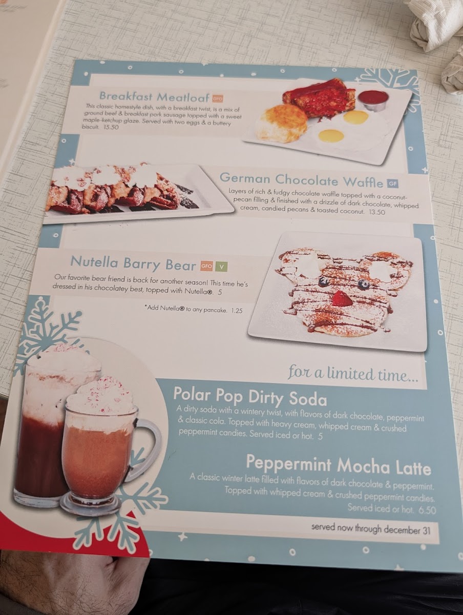 Our favorite bear friend is back for another season! This time he’s dressed in his chocolatey best, topped with Nutella® and with your choice of eggs and meat.